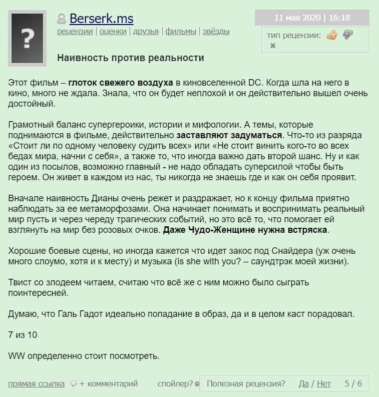 Фильм «Чудо-женщина» собрал много хороших отзывов, восторгов, рекомендаций, даже от тех людей, кто далек от темы.